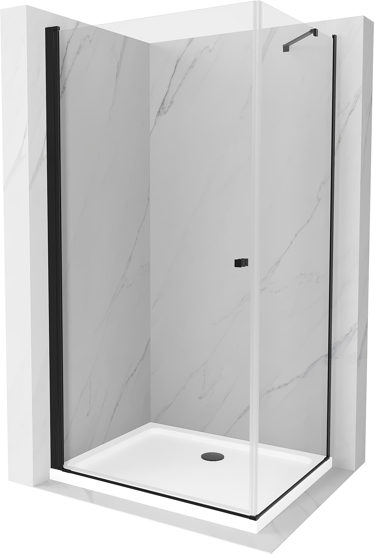 Mexen Pretoria душ кабина с отваряща се врата 100 x 70 см, прозрачна, черна + поддушово корито Flat - 852-100-070-70-00-4010B