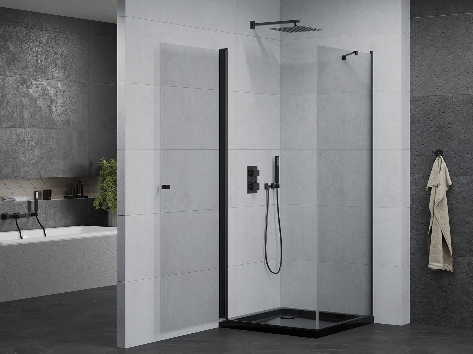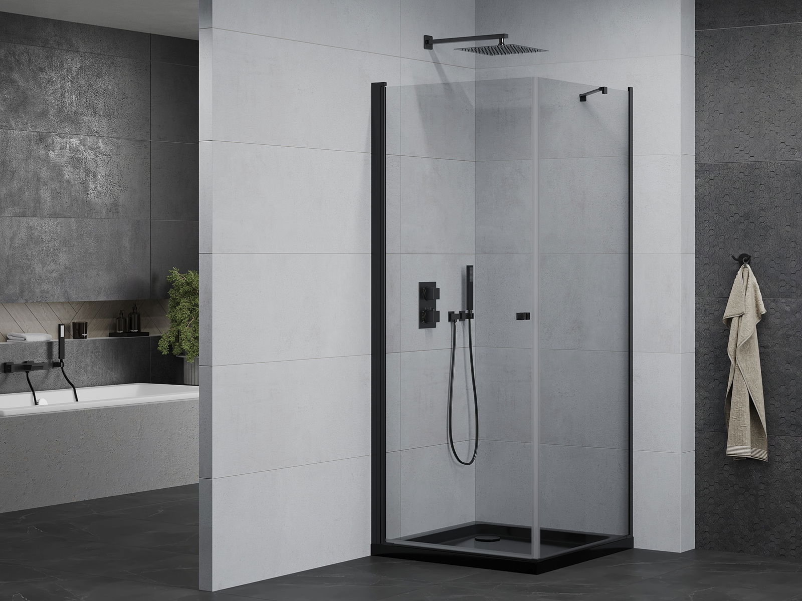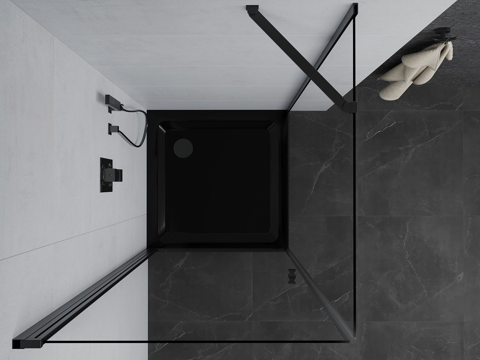 Mexen Rio квадратна душ кабина 90 x 90 см, прозрачна, черна - 860-090-090-70-00