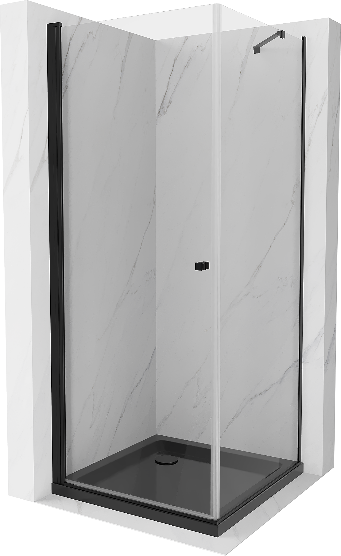 Mexen Pretoria душ кабина с отваряеми врати 90 x 90 см, прозрачна, черна + плосък
