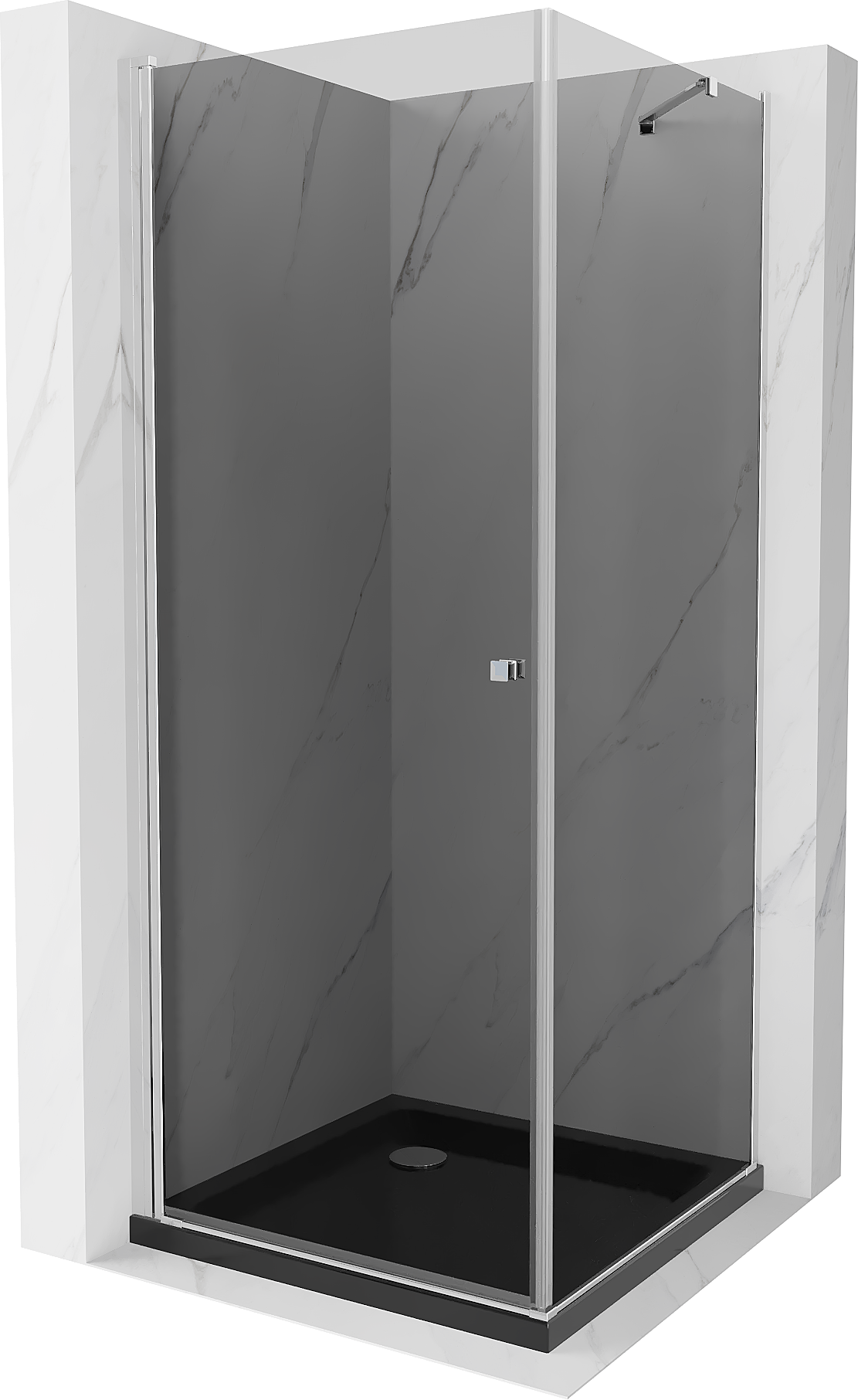 Mexen Pretoria душ кабина с отваряща се врата 80 x 80 cm, графит, хром + корито Flat, черен - 852-080-080-01-40-4070