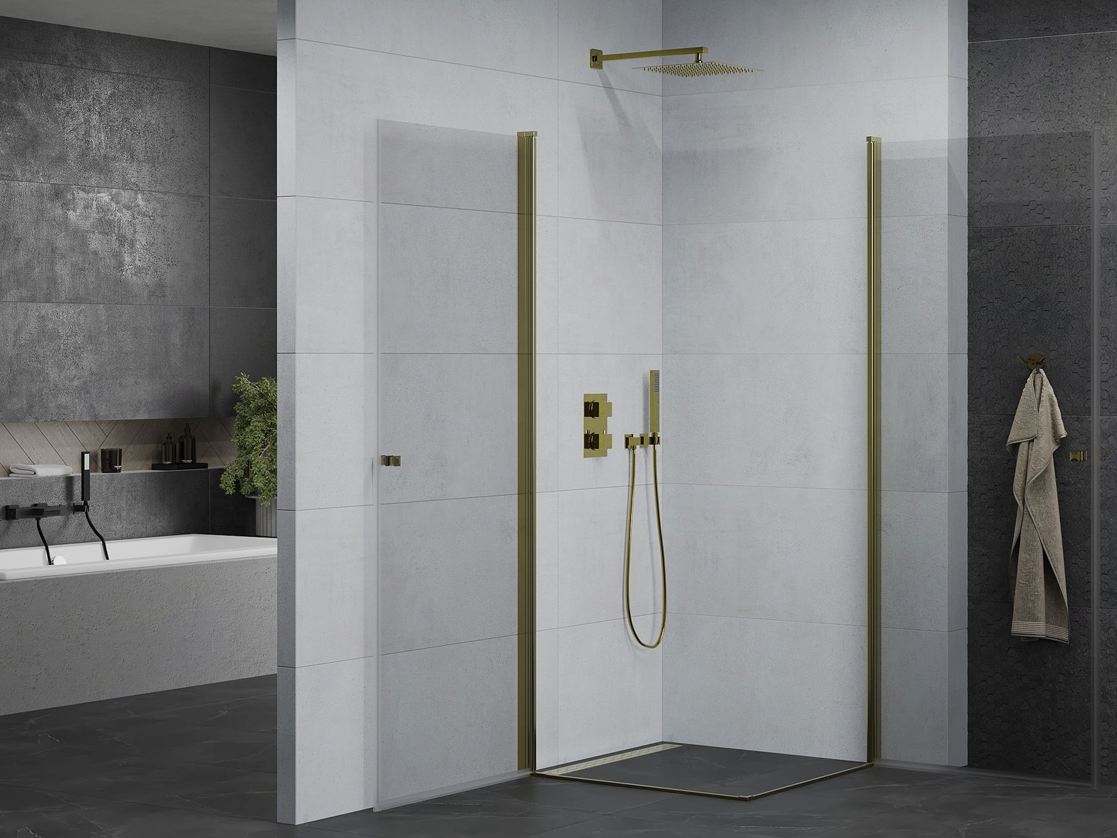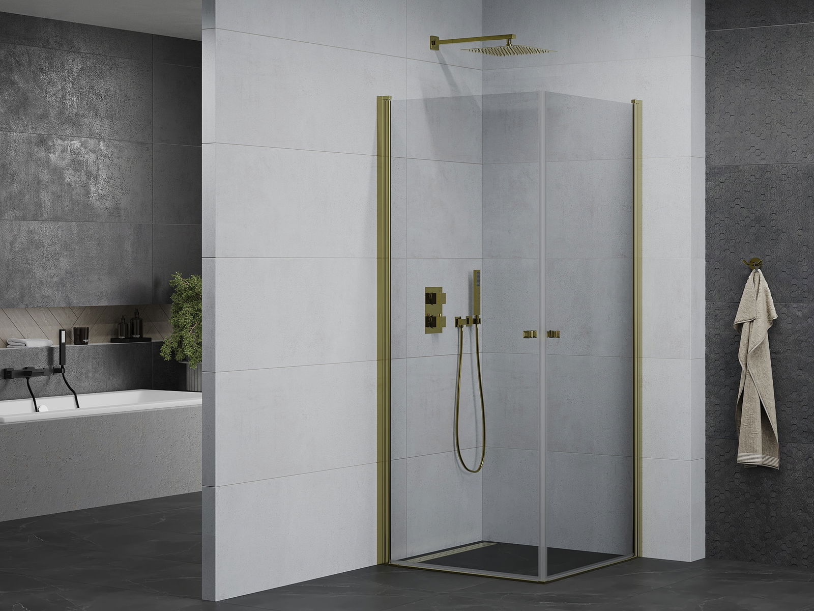 Mexen Pretoria Duo душ кабина с отваряща се врата 100 x 100 см, прозрачна, златна - 852-100-100-50-00-02
