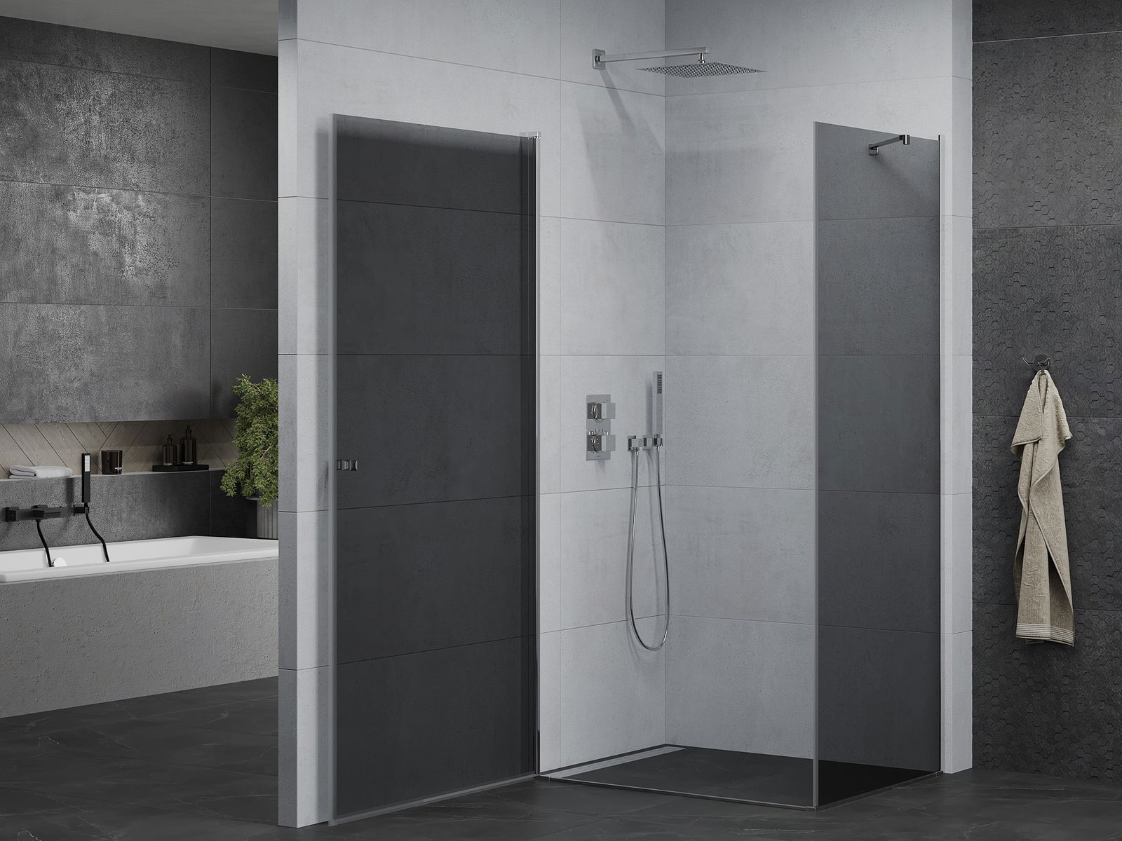 Благодарение на използването на универсалната система за монтаж, душовите врати могат да бъдат монтирани отдясно или отляво, в зависимост от нуждите. Благодарение на това можете лесно да проектирате душ, който е напаснат към пространството в банята.
