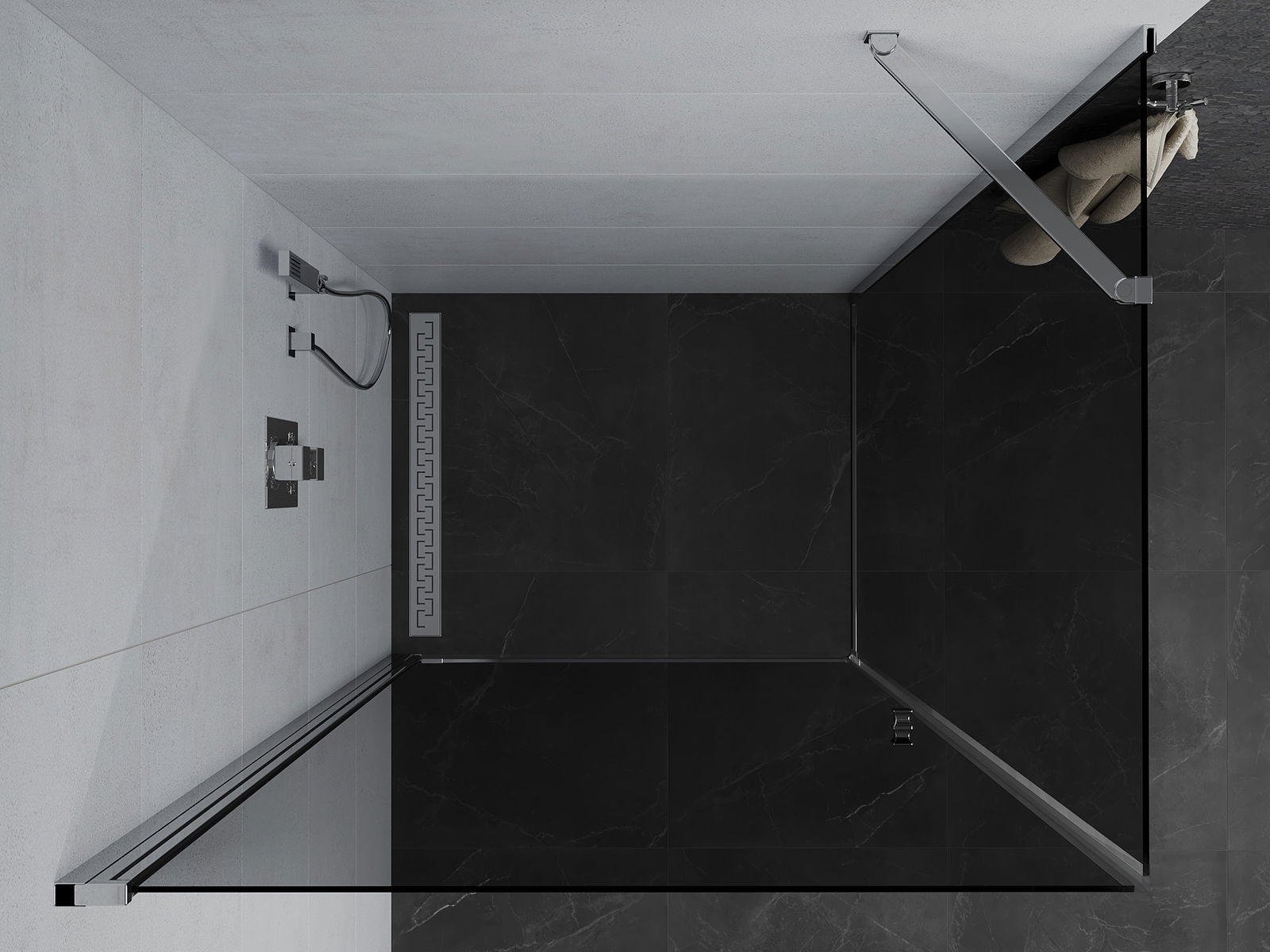 Удобната и практична дръжка е изработена от здрав и устойчив метал. Модерната форма в съчетание с покритието, съответстващо на цвета на профилите, придава на цялото модерен и стилен вид, подчертавайки естетиката на всяка баня.
