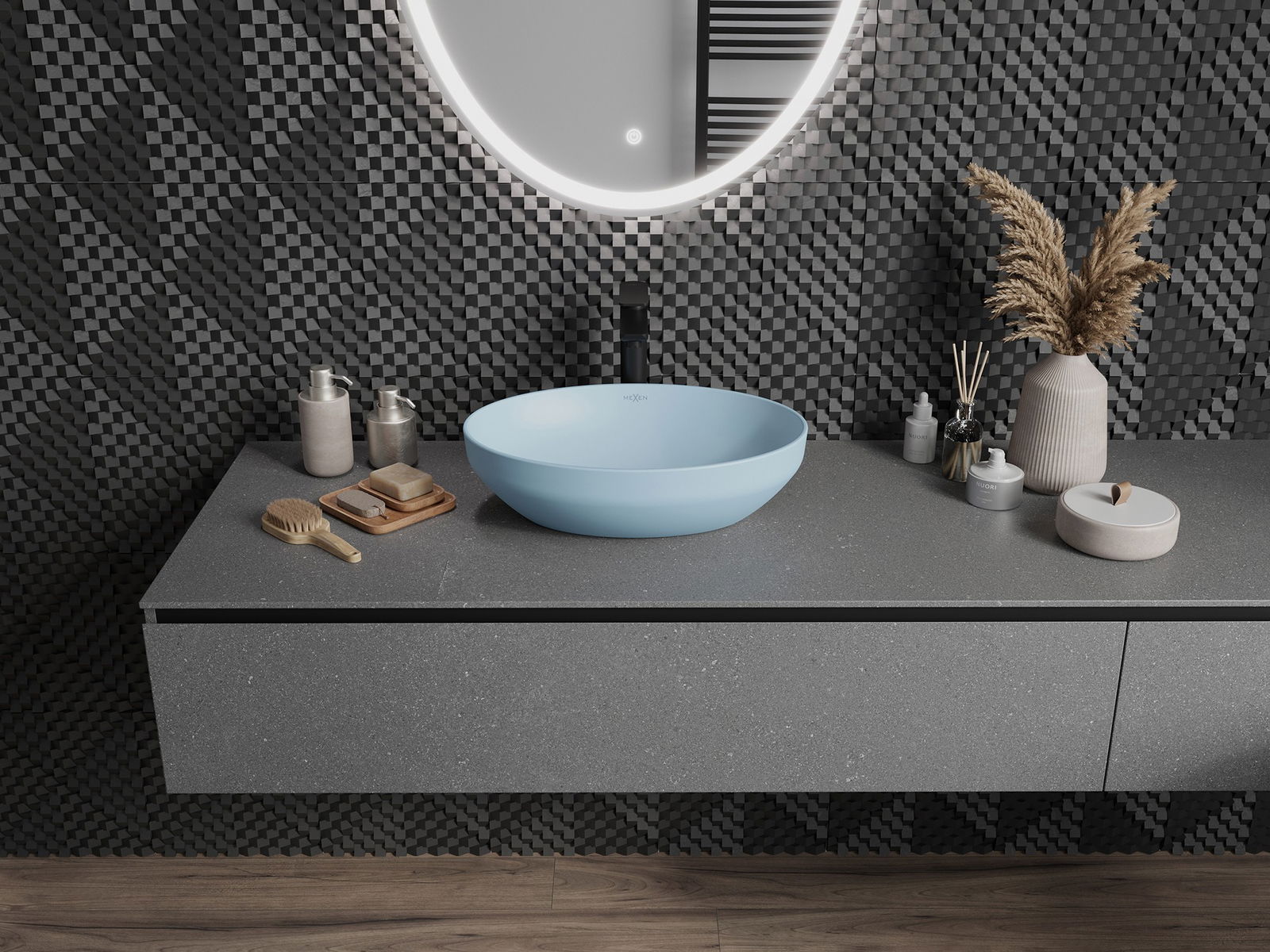 Mexen Cornelia е елегантен мивка върху плот с размери 50 x 37 cm, отличаващ се с уникално синьо, матово покритие. Изработена от висококачествена санитарна керамика, тя не само осигурява стилен външен вид, но и издържливост и лесна поддръжка. Овалната форма и липсата на отвори за батерия и преливане подчертават модерния дизайн. Идеална за бани, тя съчетава функционалност с естетика, създавайки незабравимо пространство за потребителите.