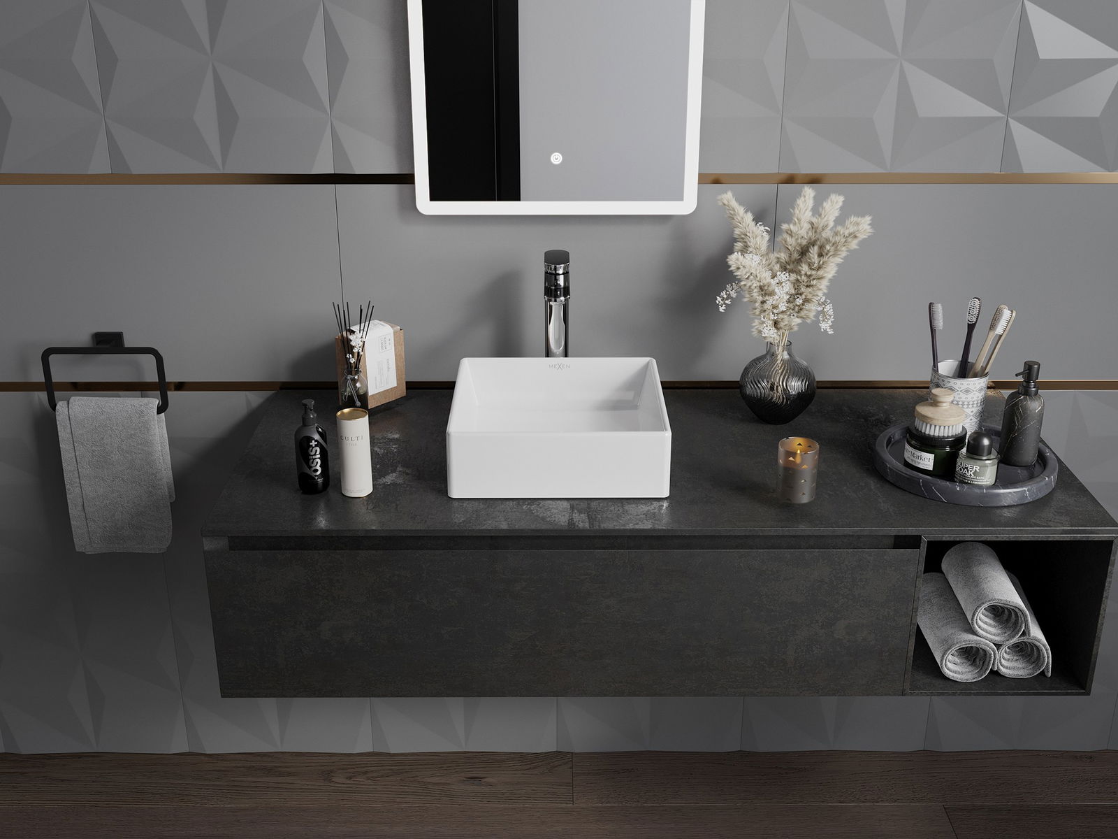 Лъскавата керамика е елегантна и безвременна. Той добавя специален блясък към банята, подчертава естетиката си и въвежда повече елегантност на интериора. Блясъкът отразява светлината, благодарение на която създава впечатление за разширяване и яркост.