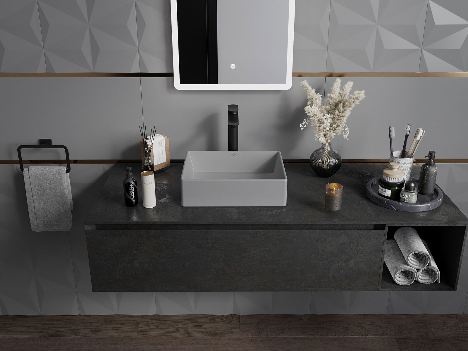 Матовата повърхност на керамиката перфектно подчертава естеството на цвета на продукта, придавайки му уникален и изразителен завършек. Фината структура на матовата керамика въвежда елегантност в банята, създавайки естетическо пространство.