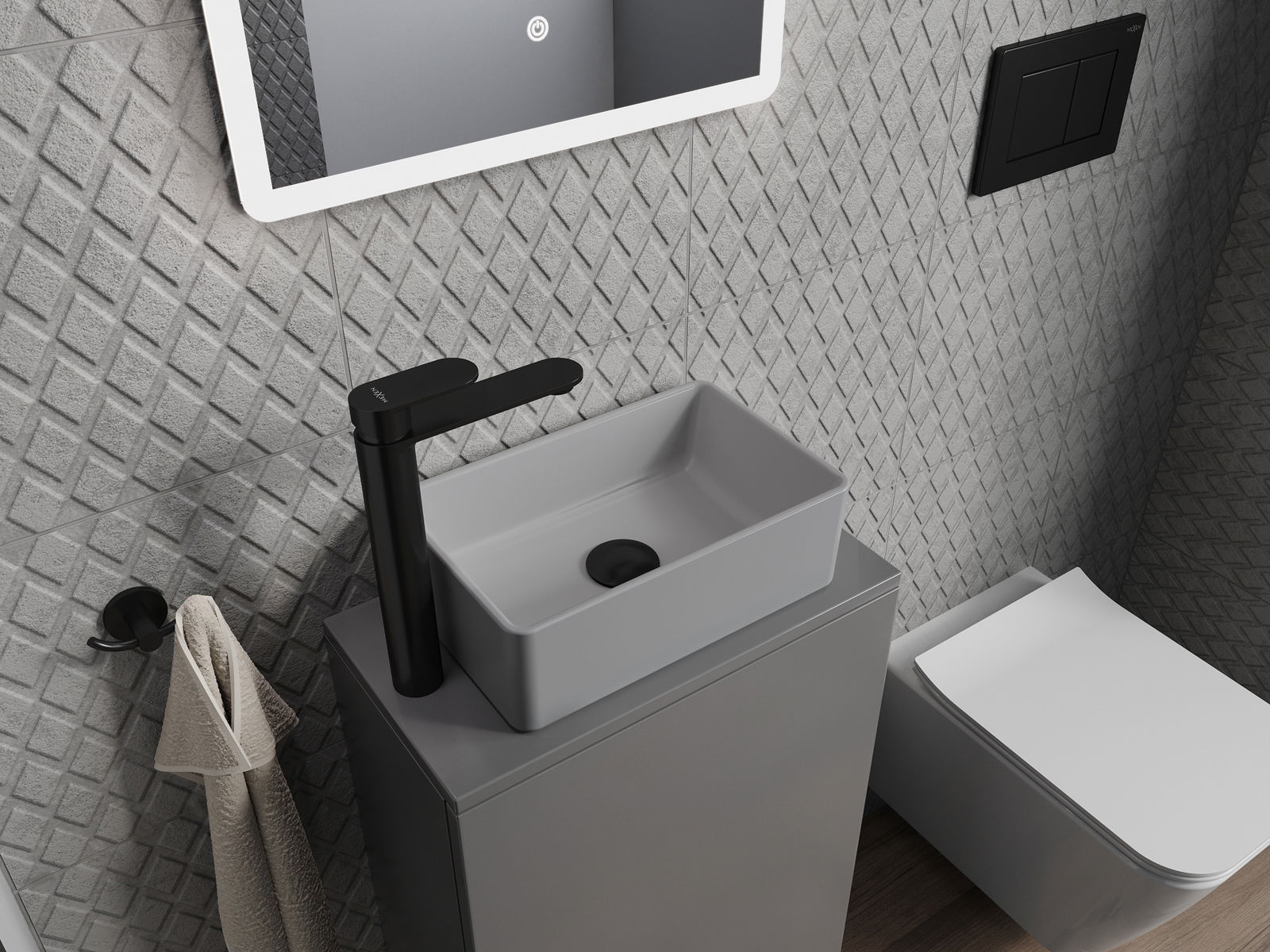 Матовата повърхност на керамиката перфектно подчертава естеството на цвета на продукта, придавайки му уникален и изразителен завършек. Фината структура на матовата керамика въвежда елегантност в банята, създавайки естетическо пространство.