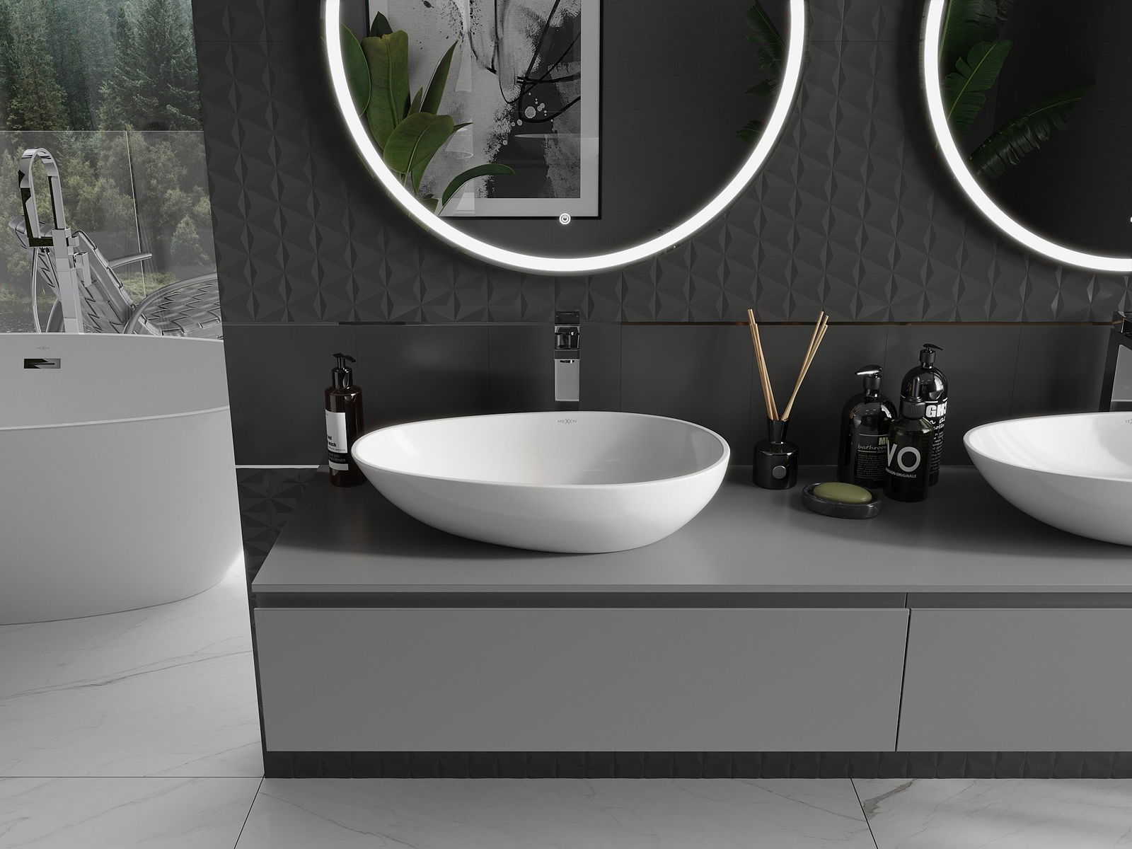 Лъскавата керамика е елегантна и безвременна. Той добавя специален блясък към банята, подчертава естетиката си и въвежда повече елегантност на интериора. Блясъкът отразява светлината, благодарение на която създава впечатление за разширяване и яркост.