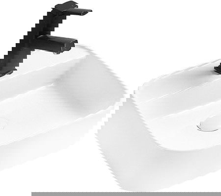 Мивката има дупка, в която можем да монтираме батерията. Това спестява ценно пространство в банята и подчертава естетиката му. Това решение също ви позволява лесно да се държите чисти около мивката.