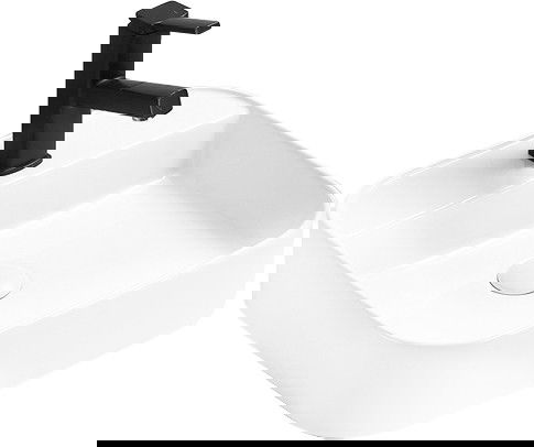 Умивалникът има отвор, в който можем да монтираме батерия. Това позволява да се спести ценно пространство в банята и да подчертае нейната естетика. Това решение също така улеснява поддържането на чистота около умивалника.