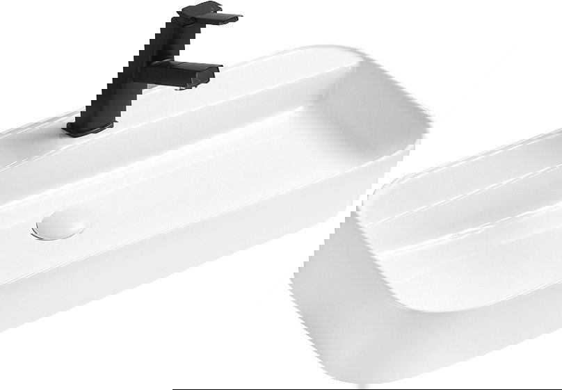Мивката има дупка, в която можем да монтираме батерията. Това спестява ценно пространство в банята и подчертава естетиката му. Това решение също ви позволява лесно да се държите чисти около мивката.