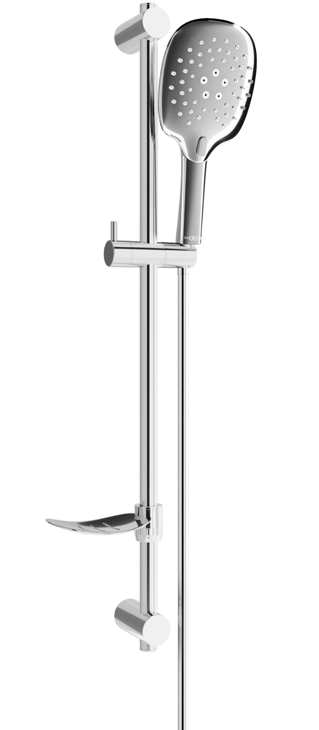 Дръжката за душ има три вида поток, променен с превключвател. Той дава пълна свобода и способността да съответства на нуждите на потребителя, предлагайки деликатен или по -силен и по -концентриран поток от вода.
