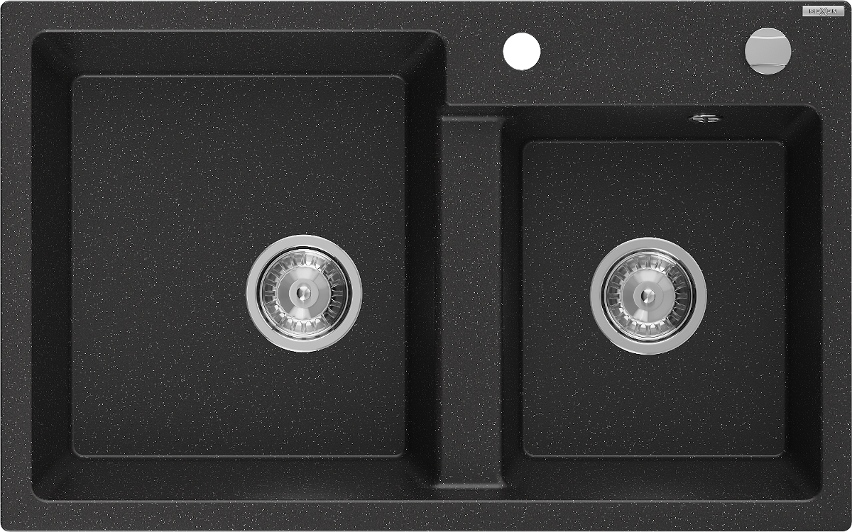 Mexen Tomas двукоморна гранитна мивка 800 x 500 мм, черен/сребърен металик, сифон хром - 6516802000-73