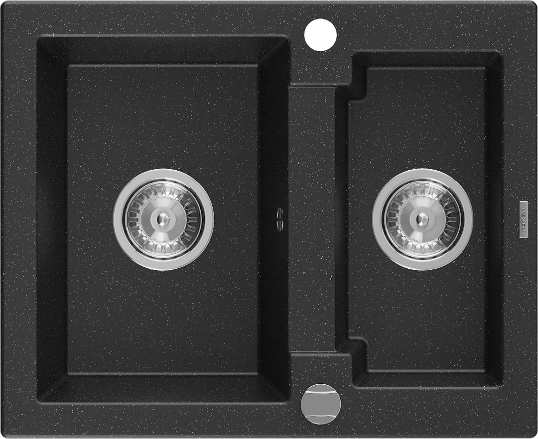 Mexen Carlos гранитна мивка с 1,5 камери 582 x 475 mm, черен/сребърен металик, хромиран сифон - 6518581500-73