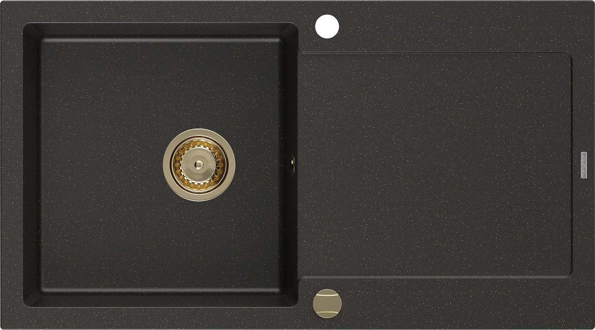 Mexen Leo композитна мивка с 1 корито и отцедник 900 x 500 mm, черен/златен металик, сифон златен - 6501901010-75-G