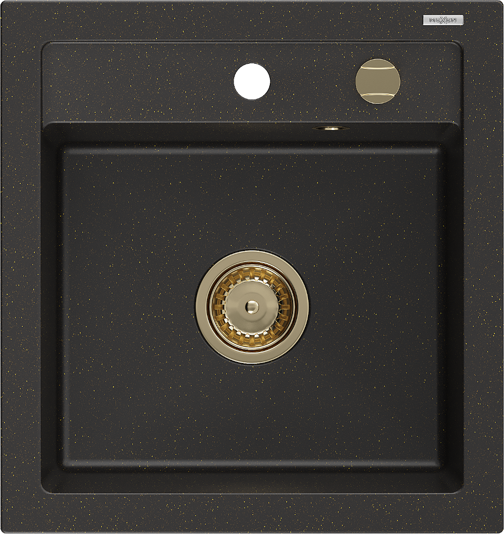 Mexen Vito гранитна мивка с 1 камера 520 x 490 мм, черна/златен металик, златен