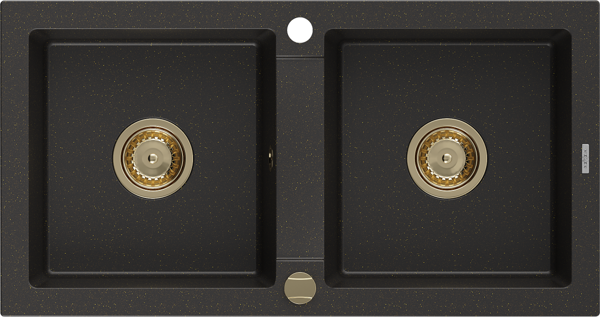Mexen Mario гранитна мивка с 2 камери 820 x 436 mm, черен/златен металик, сифон златен - 6504822000-75-G