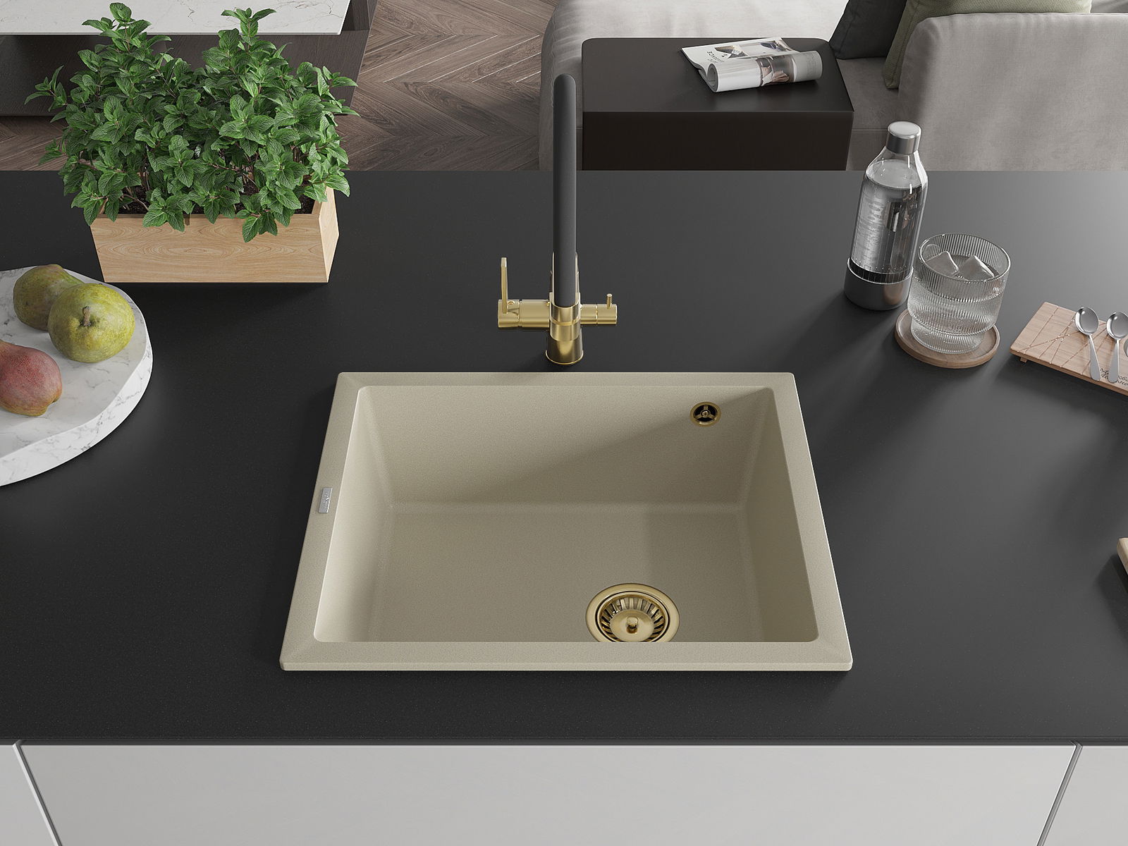 Мивката е направена от висококачествен гранит. Това е елегантно и най -вече практично допълнение към всяка кухня, независимо от нейния стил. Висококачествената и гранитна издръжливост осигуряват много години употреба.