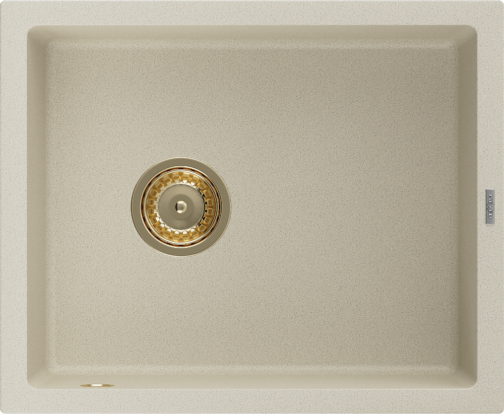 Mexen Pedro гранитна мивка с 1 корито 560 x 460 мм, бежова, златен сифон - 6508561000-69-G