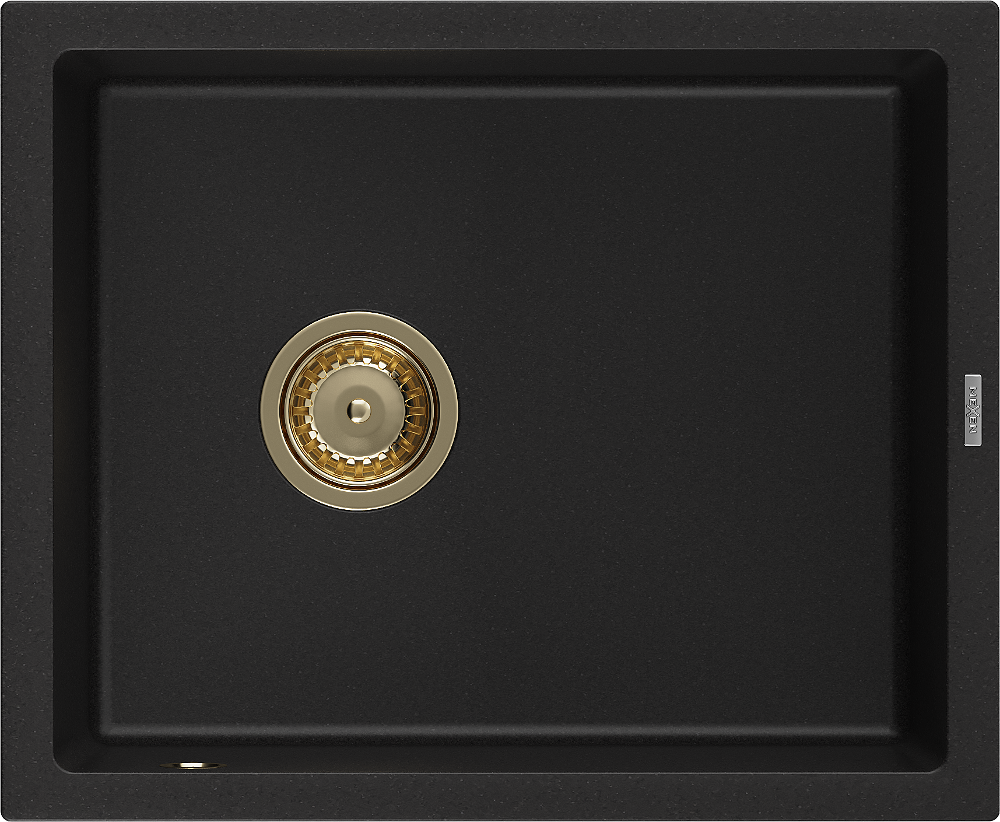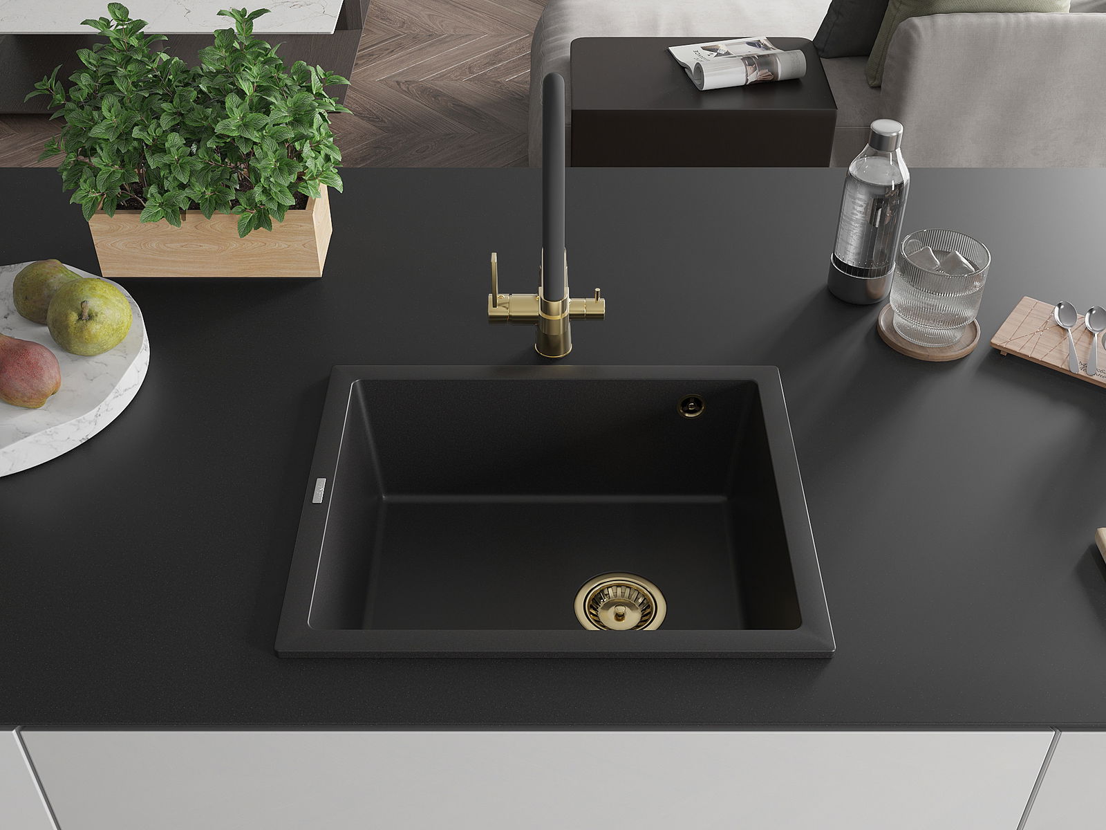Mexen Pedro гранитна кухненска мивка с 1 корито 560 x 460 мм, черна, златен сифон - 6508561000-77-G