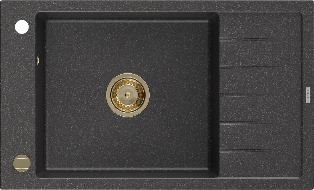 Mexen Elias гранитна мивка с 1 отделение с отцедник 795 x 480 mm, черен с пръски, златен сифон - 6511791005-76-G