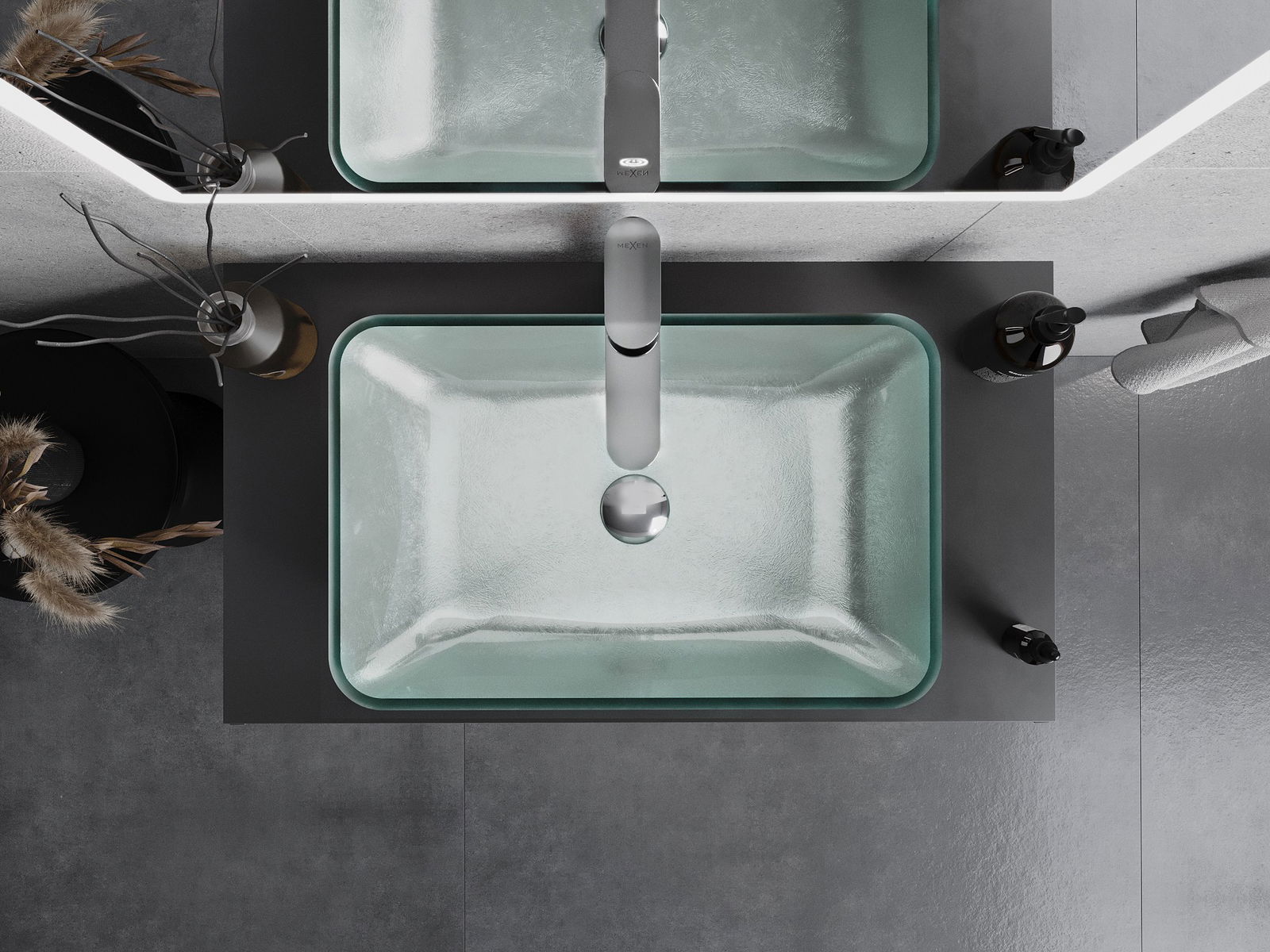 За производството на статията се използва стъкло с висока съпротива на синината, което гарантира безопасността на употребата. Стъклото се характеризира със свойства с висока хигиена, което улеснява поддържането и здравето -приятелски настроени.