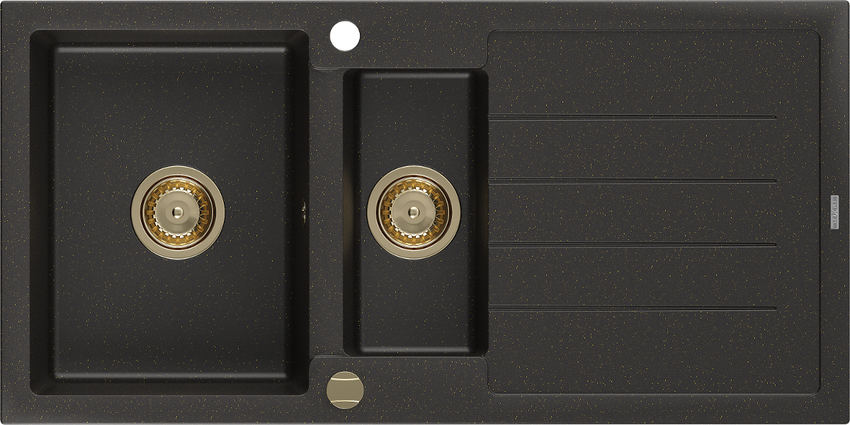 Mexen Andres гранитна мивка с 1,5 камери и отцедник 1000 x 500 мм черен/златен металик, златен сифон - 6515101510-75-G
