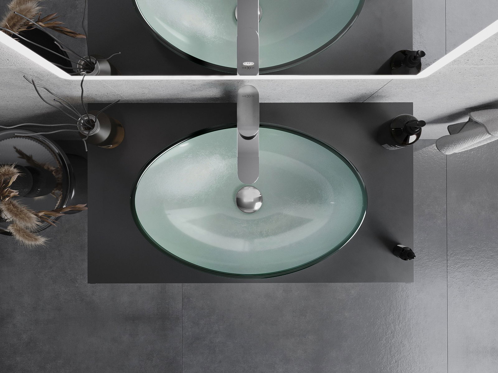 За производството на статията се използва стъкло с висока съпротива на синината, което гарантира безопасността на употребата. Стъклото се характеризира със свойства с висока хигиена, което улеснява поддържането и здравето -приятелски настроени.