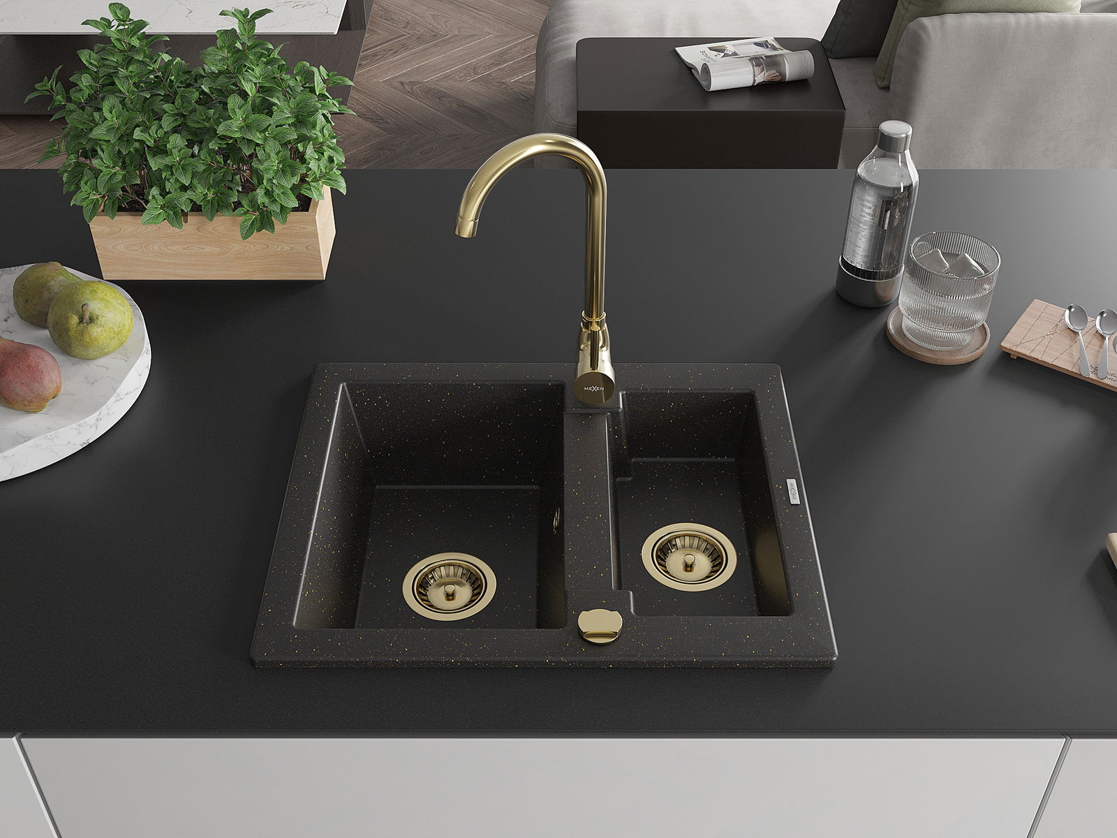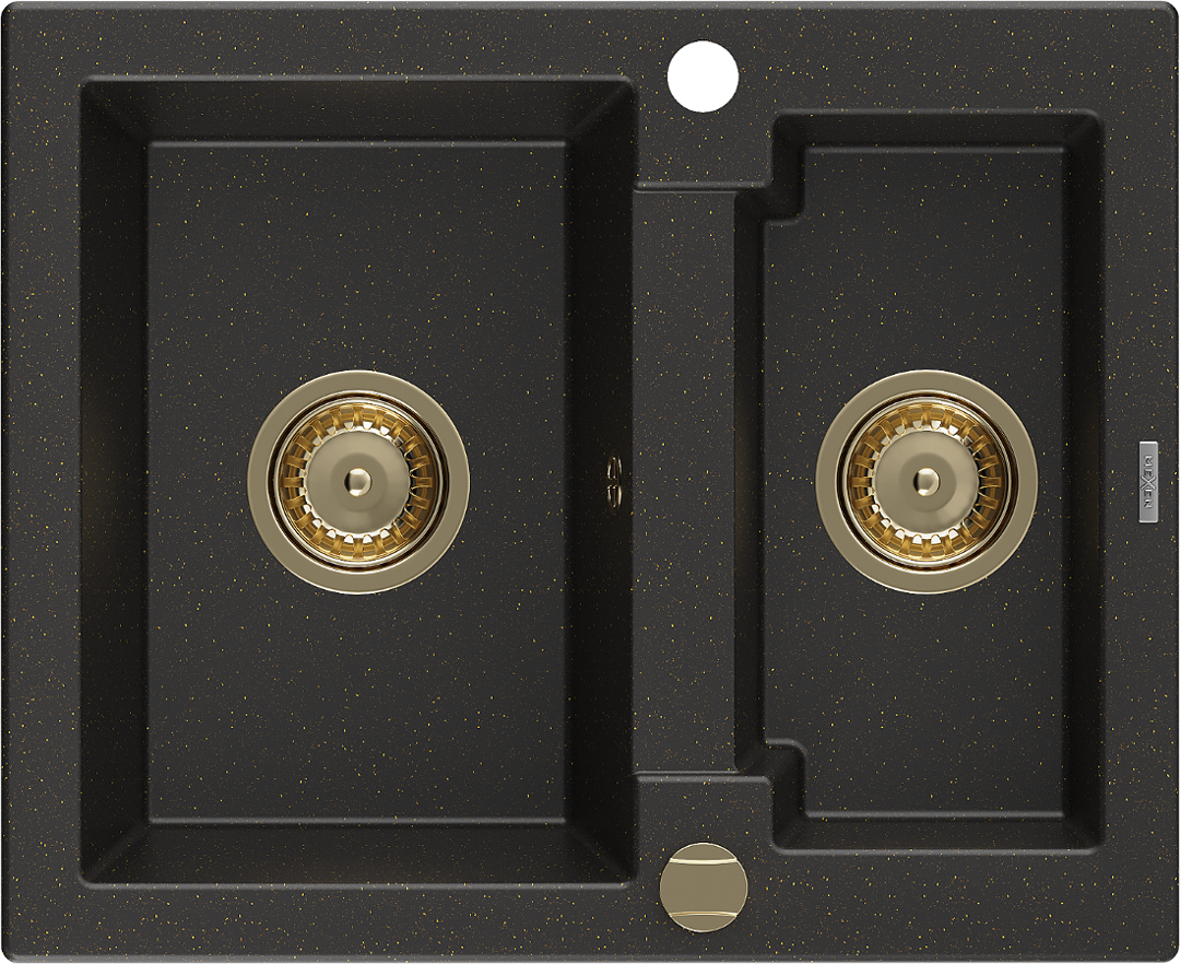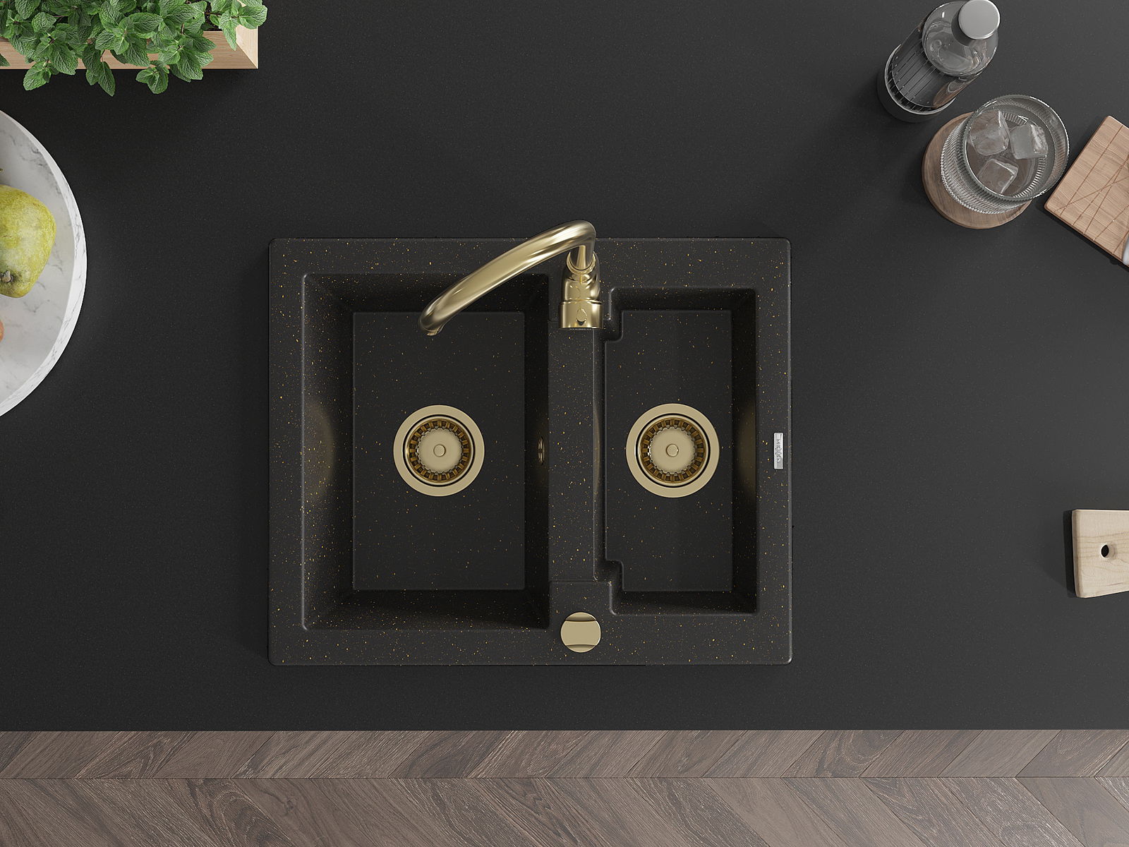Mexen Carlos гранитна мивка с 1,5 отделения 582 x 475 мм, черно/златист металик,