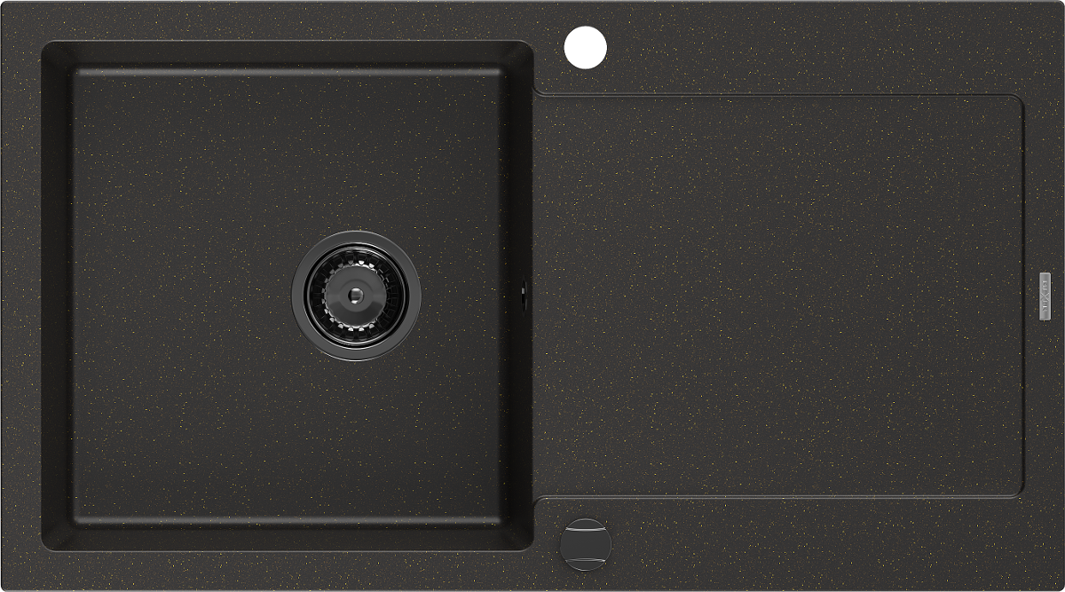 Mexen Leo кухненска мивка гранитна 1-камерна с отцедник 900 x 500 мм, черен/златен металик, сифон черен - 6501901010-75-B