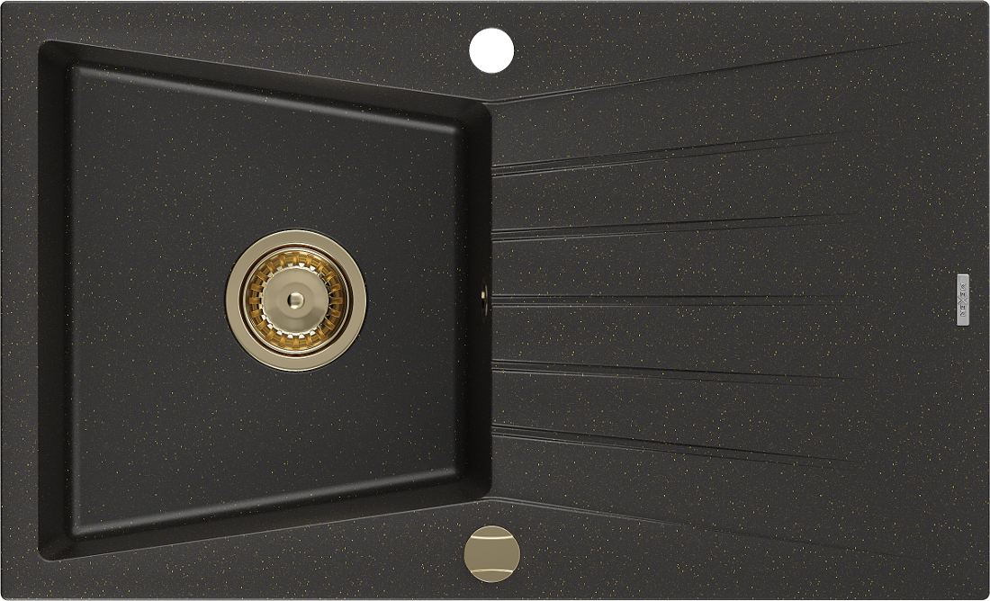 Mexen Cesar гранитна мивка 1-камерна с отцедник 775 x 470 мм, черен/златен металик, златен сифон - 6514771010-75-G