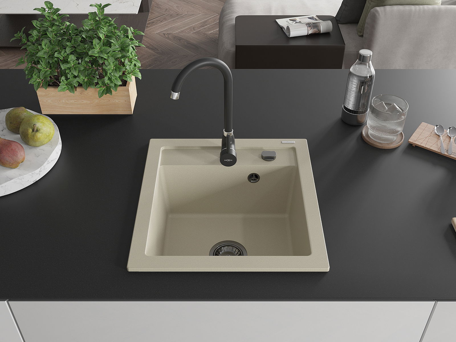 Мивката е направена от висококачествен гранит. Това е елегантно и най -вече практично допълнение към всяка кухня, независимо от нейния стил. Висококачествената и гранитна издръжливост осигуряват много години употреба.