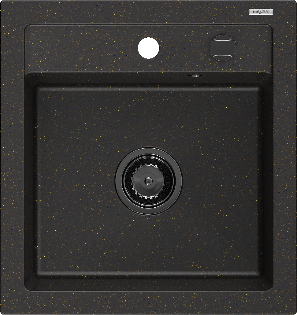 Mexen Vito гранитна мивка с 1 отделение 520 x 490 mm, черен/златист металик, черен сифон - 6503521000-75-B