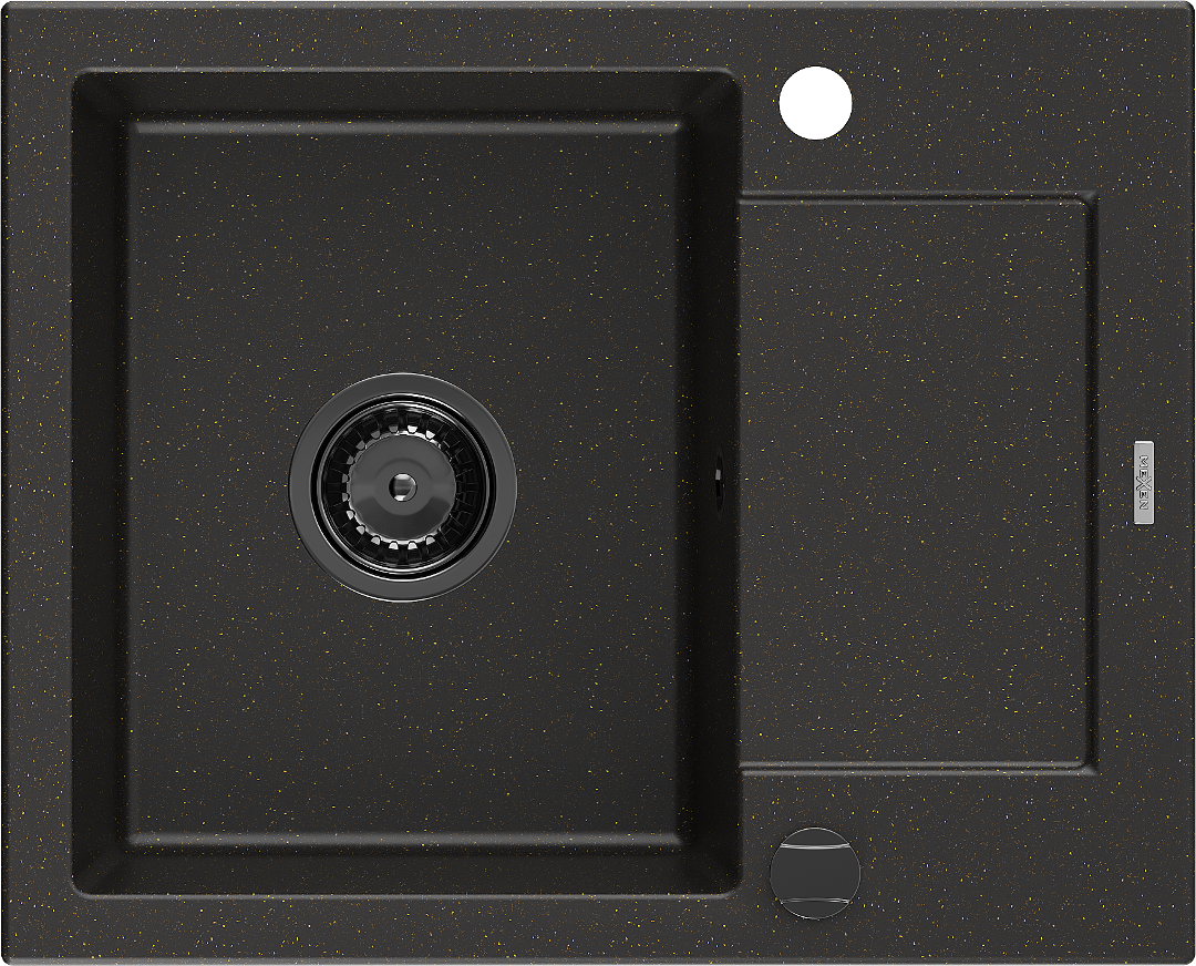 Mexen Enzo гранитна мивка с 1 отделение и отцедник 576 x 465 мм, черен/златист металик, черен сифон - 6506571005-75-B