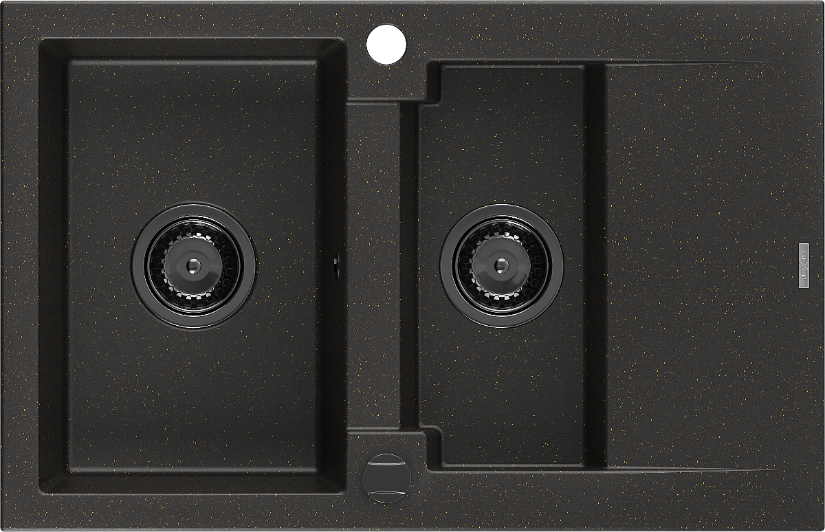 Mexen Gaspar гранитна мивка с 1,5 камери с отцеждач, 737 x 475 mm, черен/златен металик, сифон черен - 6507731505-75-B