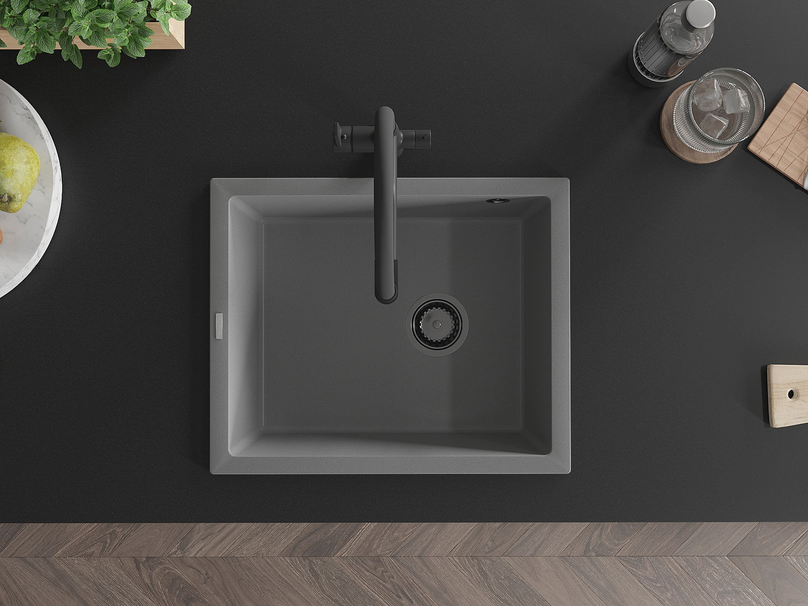 Mexen Pedro гранитна мивка с 1-корито 560 x 460 мм, сива, черен сифон - 6508561000-71-B