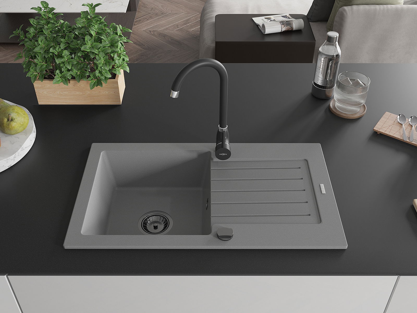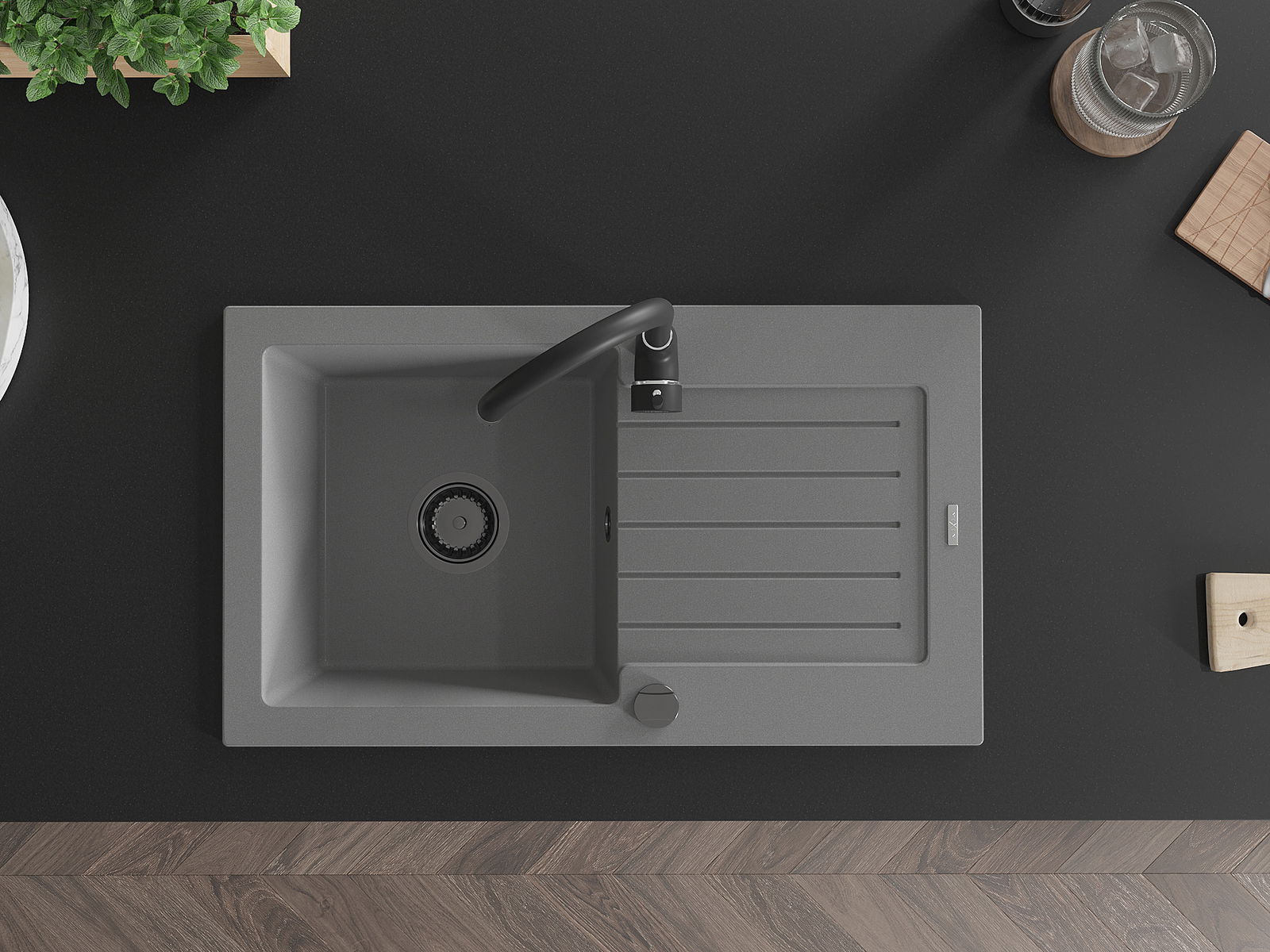 Мивката е направена от висококачествен гранит. Това е елегантно и най -вече практично допълнение към всяка кухня, независимо от нейния стил. Висококачествената и гранитна издръжливост осигуряват много години употреба.