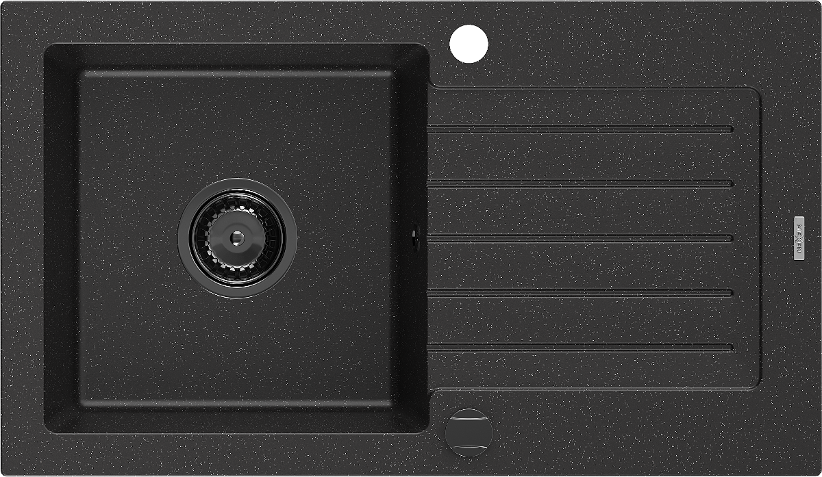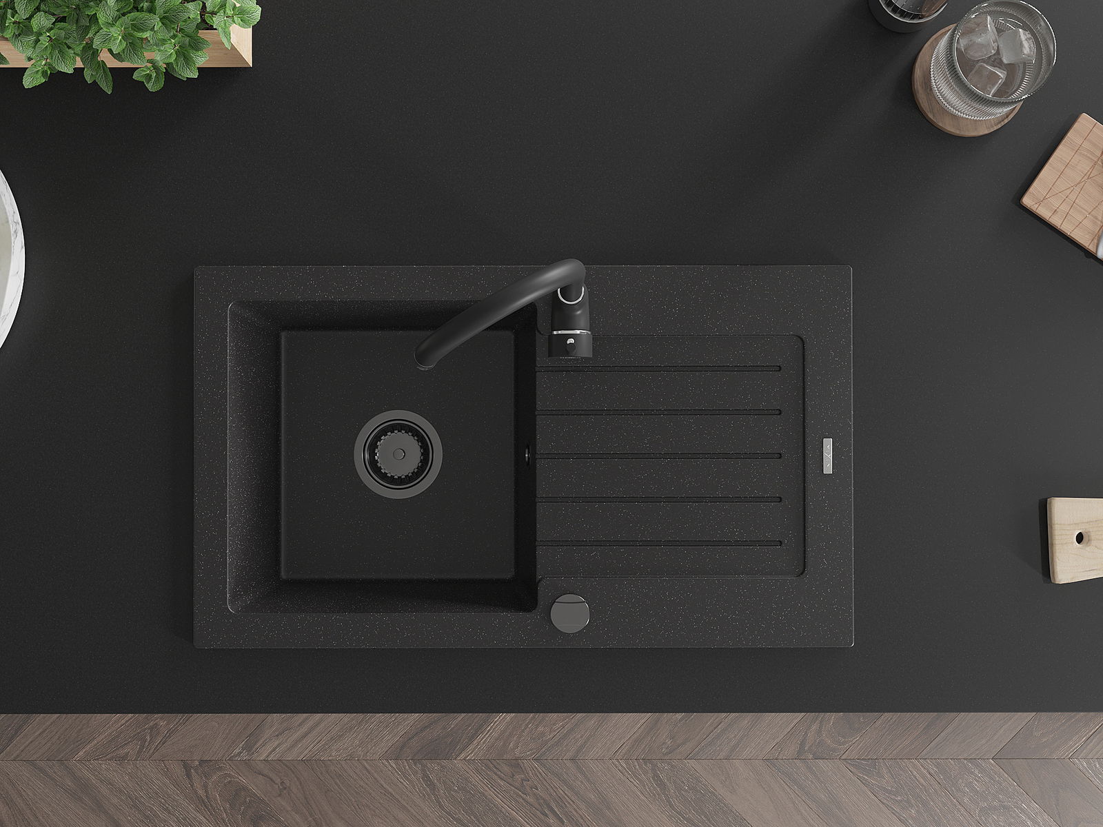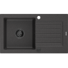 Mexen Pablo гранитна мивка с едно корито и отцедник 752 x 436 mm, черен/сребрист металик, черен сифон - 6510751010-73-B