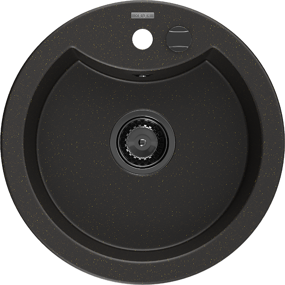 Mexen Diego гранитна мивка с 1 отделение 488 x 480 mm, черно/златист металик, черен сифон - 6512481000-75-B