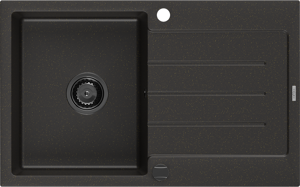 Mexen Bruno гранитна мивка с една камера и отцеждащ отвор 795 x 495 мм, черна/златен металик, черен сифон - 6513791010-75-B