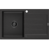 Mexen Bruno гранитна мивка с 1 отделение и дренаж 795 x 495 mm, черно с петънца, черен сифон - 6513791010-76-B