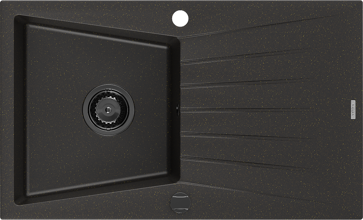 Mexen Cesar гранитна мивка с едно корито с отцедник 775 x 470 мм, черна/златен