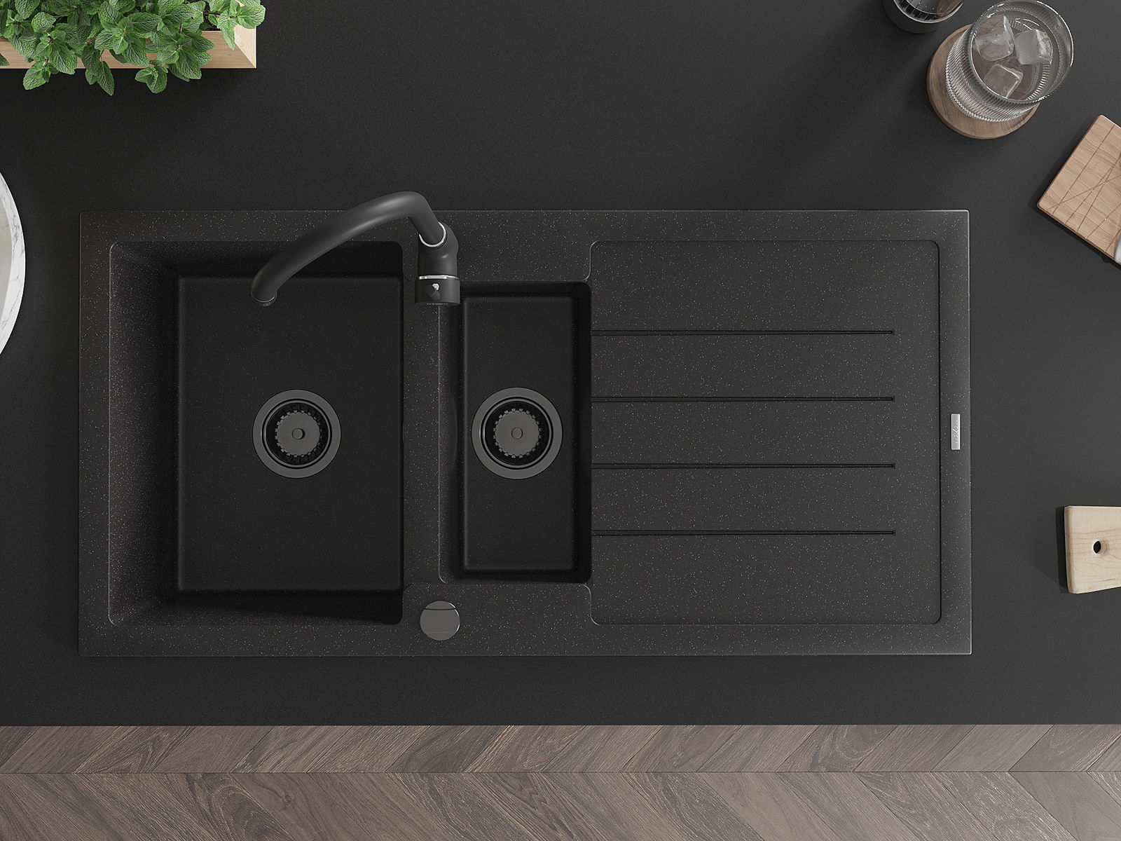Mexen Andres гранитна мивка 1,5-коморна с отцедник 1000 x 500 мм черен/сребърен металик сифон черен - 6515101510-73-B