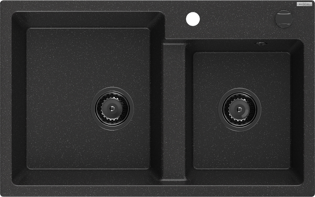 Mexen Tomas гранитна мивка с две камери 800 x 500 мм, черно/сребрист металик, черен сифон - 6516802000-73-B