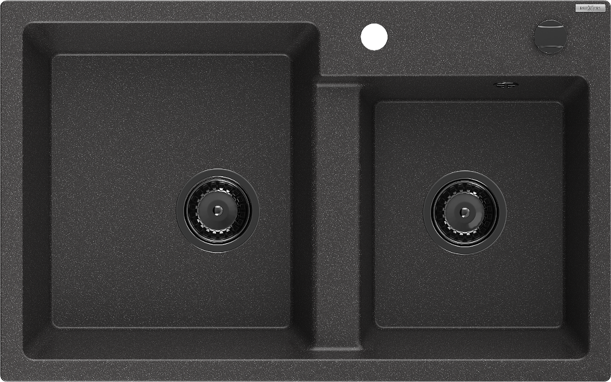 Mexen Tomas гранитна мивка с 2 отделения 800 x 500 mm, черна с пръски, черен сифон - 6516802000-76-B