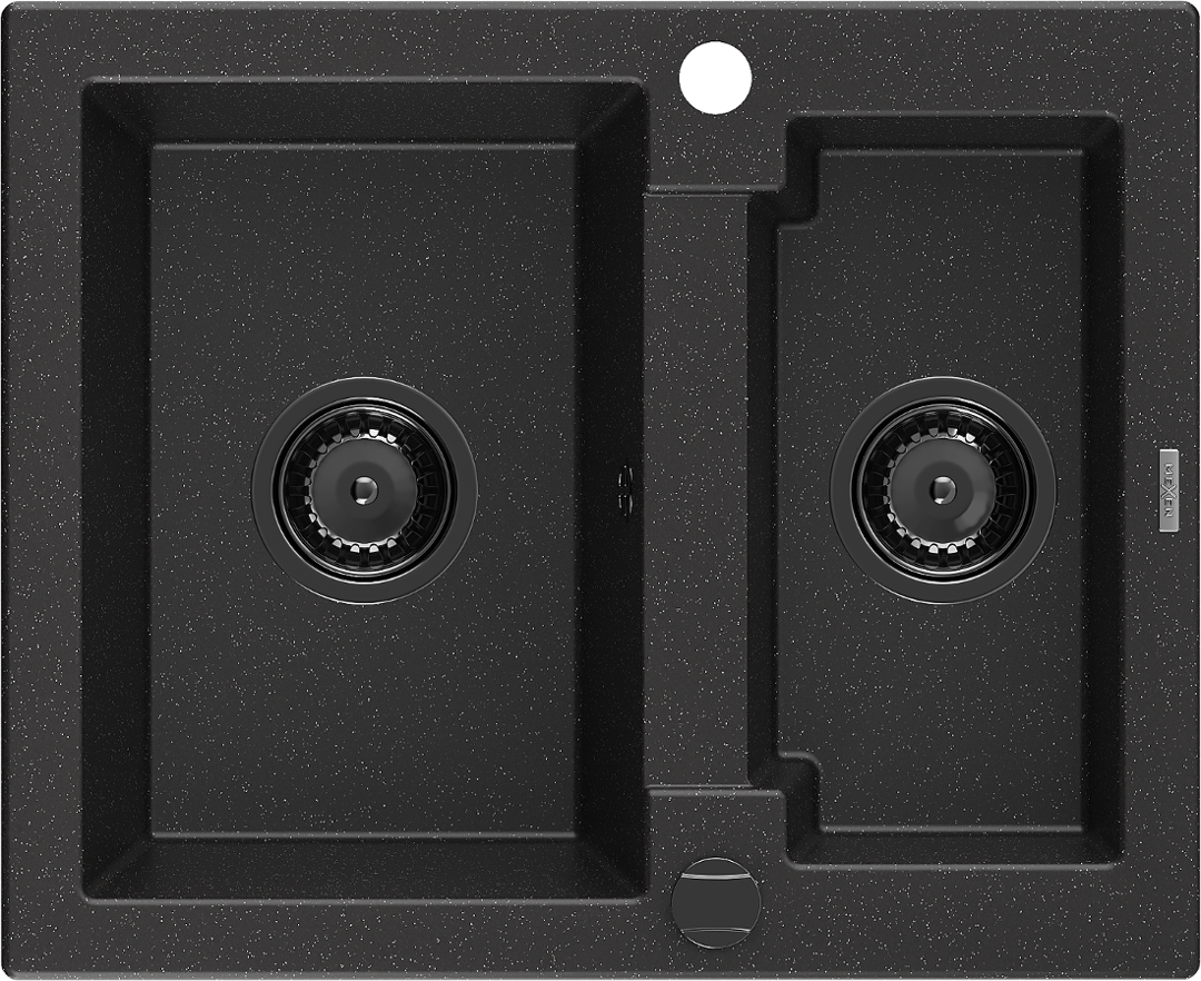 Mexen Carlos гранитна мивка с 1,5 камери 582 x 475 мм, черен/сребърен металик, черен сифон - 6518581500-73-B