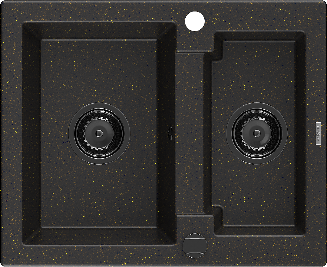 Mexen Carlos гранитна мивка 1,5-камерна 582 x 475 мм, черен/златен металик, черен сифон - 6518581500-75-B