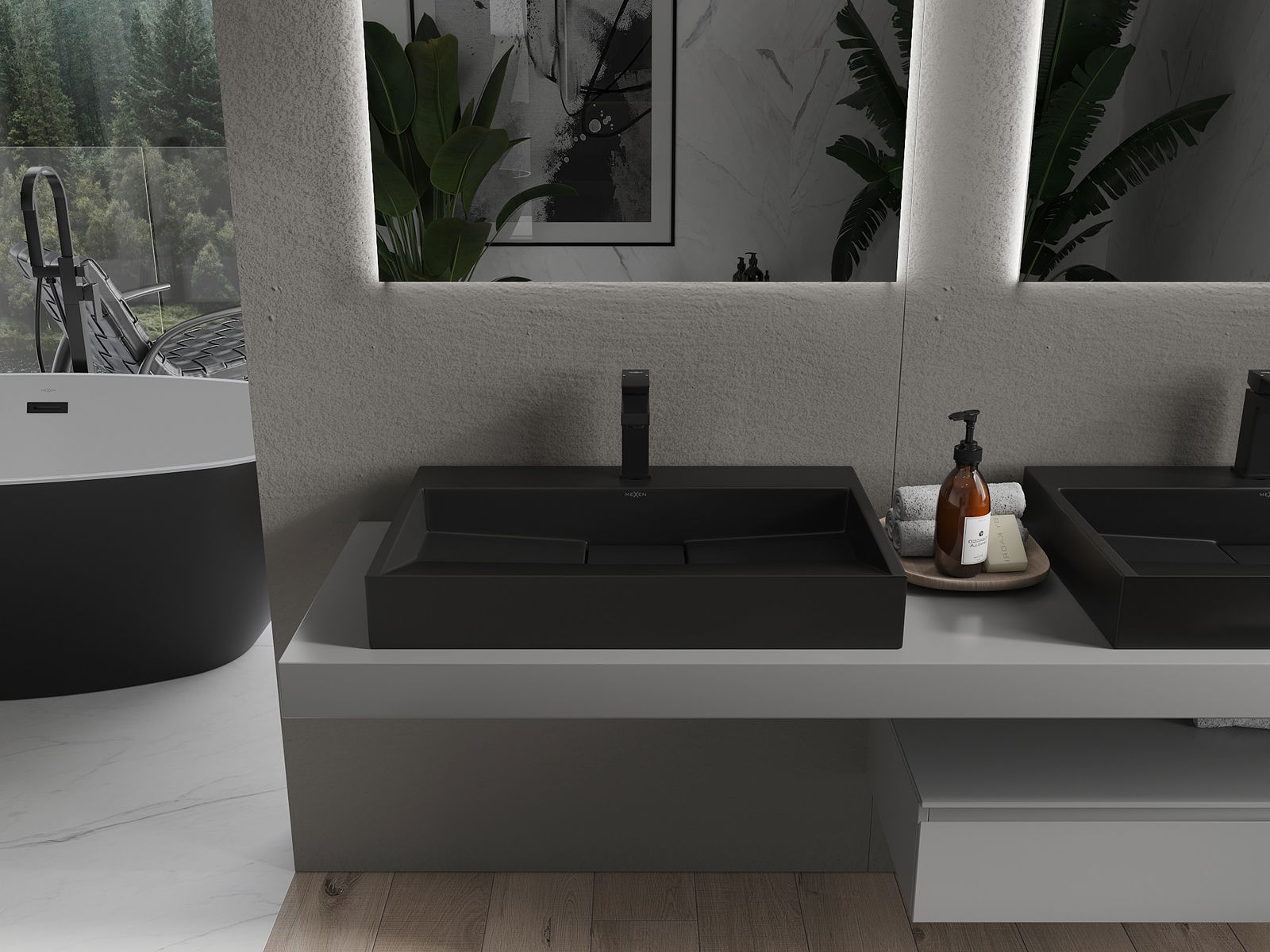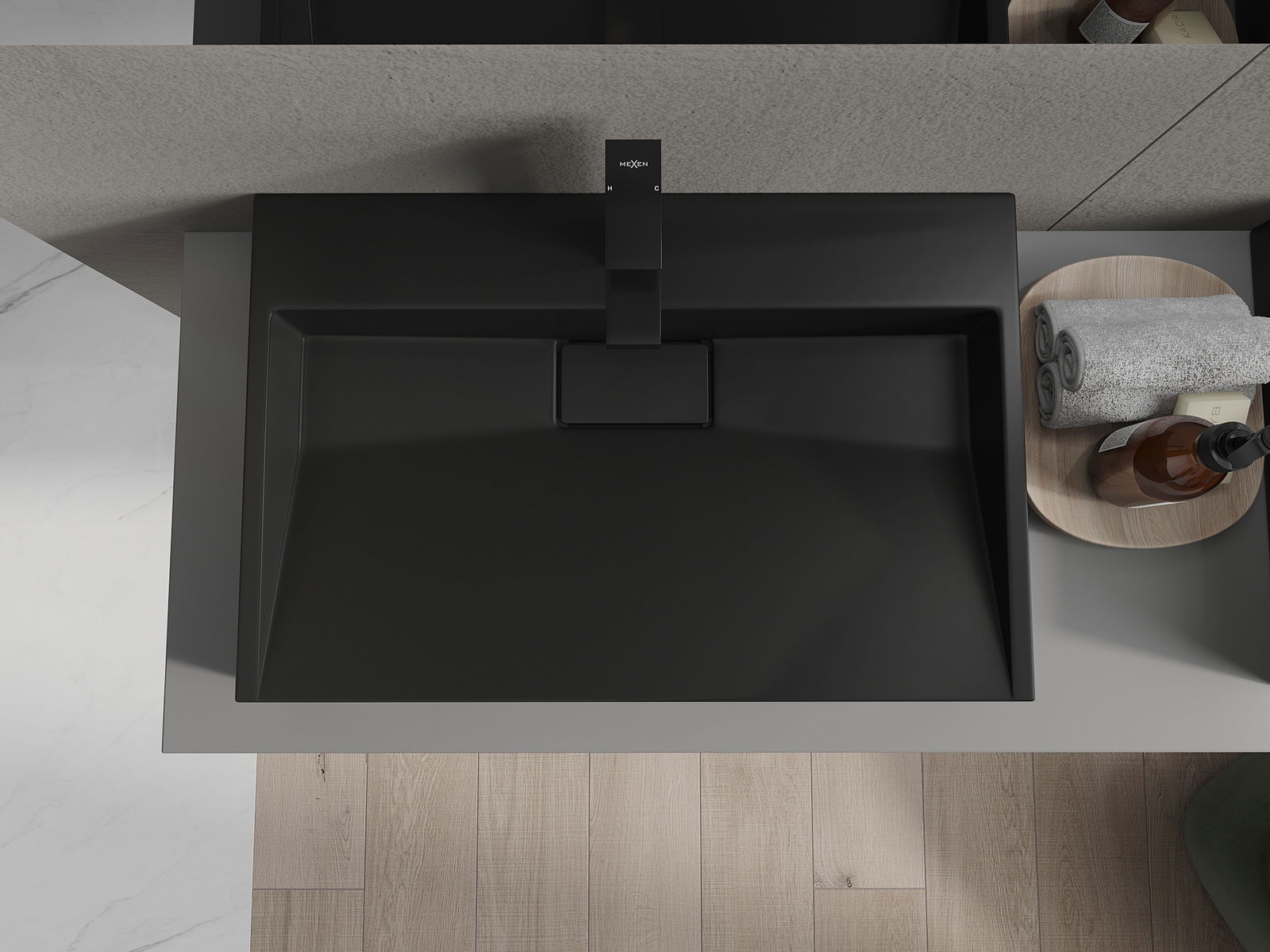 Mexen Ava плотова мивка от конгломерат 1/O 70 x 46 см, черна - 23017071