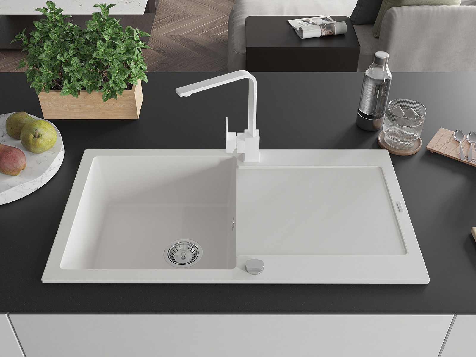 Повърхността на мивката е устойчива на петна и обезцветяване, благодарение на които е лесно да се почиства и запазва цвета си за дълго време. Естетически и практически допълващи всяка кухня.
