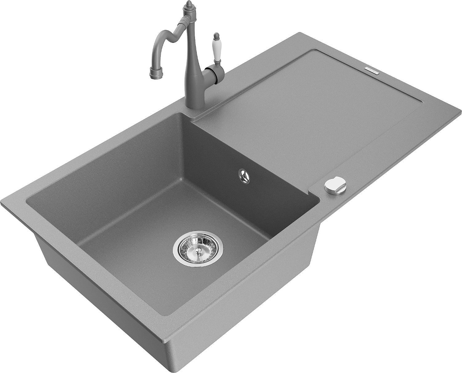 Mexen Leo единична кухненска мивка от гранит с отцедник и кухненски смесител Carla, сив - 6501-71-670700-71